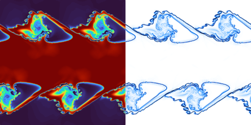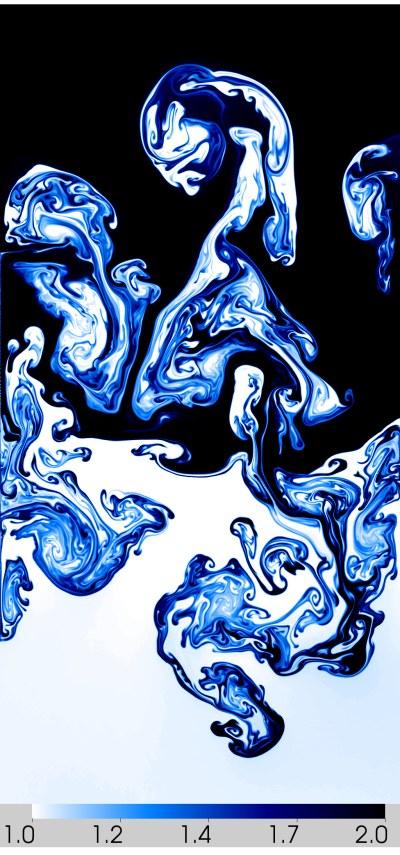 π¬ Inviscid Kelvin-Helmholtz instability using high-order invariant domain preserving discontinuous Galerkin methods with convex limiting. Image courtesy of Will Pazner, as part of the 2021 MFEM Workshop Visualization Contest.