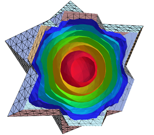 Level surfaces in the interior of the solution from Example 1 on escher.mesh. Visualization with GLVis.