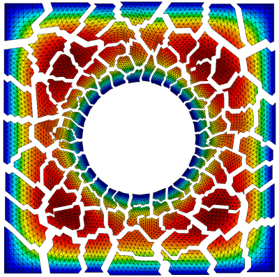Parallel version of Example 1 on 100 processors with a relatively coarse version of square-disc.mesh. Visualization with GLVis.