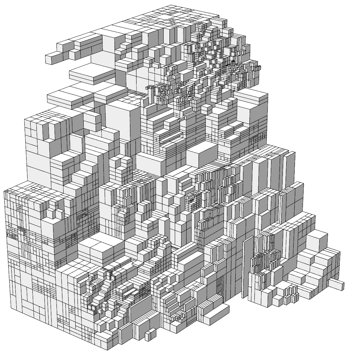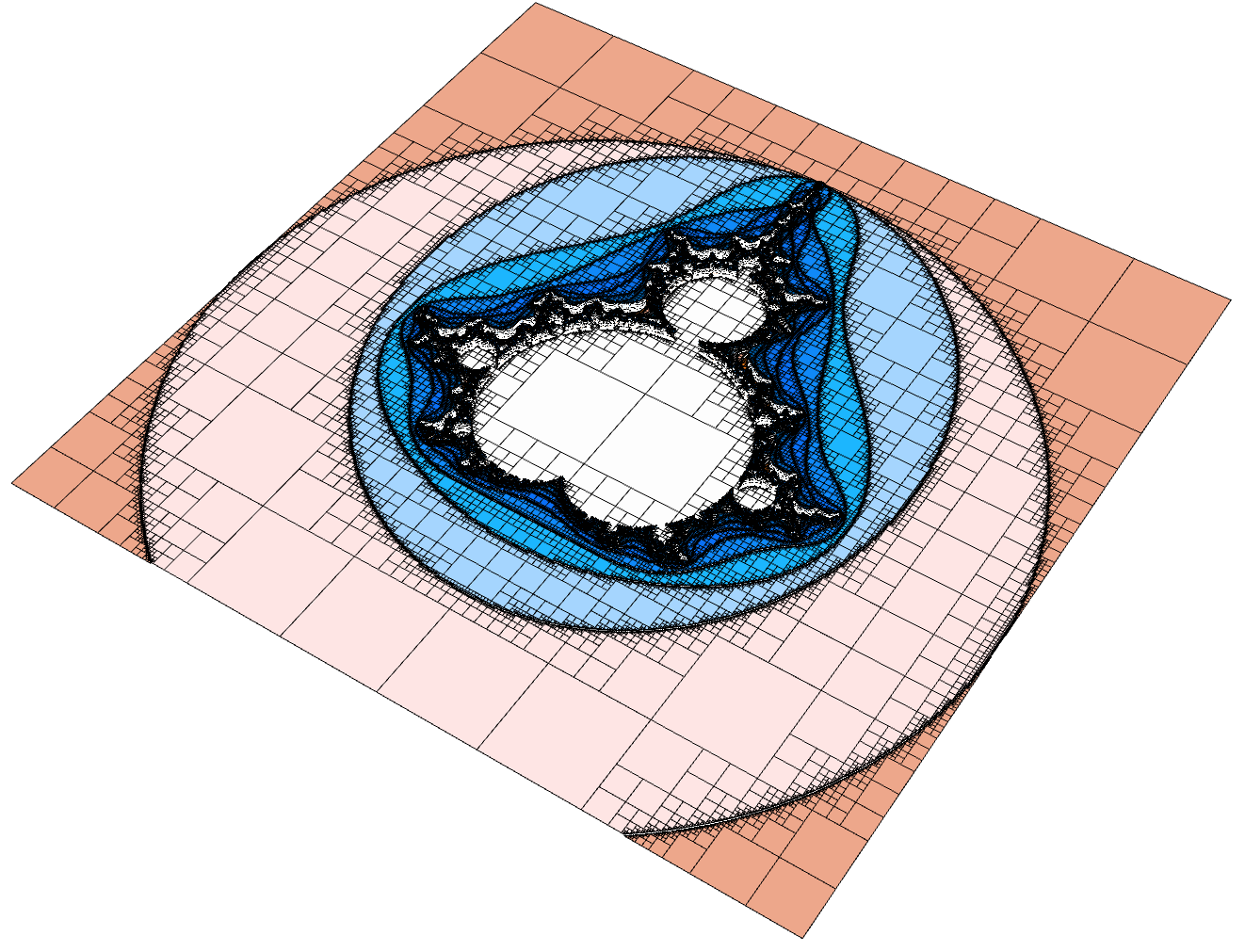 The Shaper miniapp applied to a multi-material input functions described by the iterates of the Mandelbrot set. Visualization with GLVis.