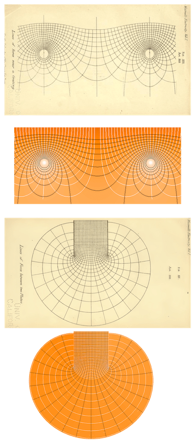 Comparisons of equipotential surfaces and force lines from Maxwell's Treatise on Electricity and Magnetism with results from MFEM's Volta miniapp.