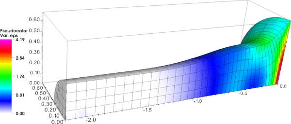 π¬ Compressible Euler in Lagrangian frame using the Laghos miniapp. Image courtesy of Vladimir Tomov, as part of the 2021 MFEM Workshop Visualization Contest.