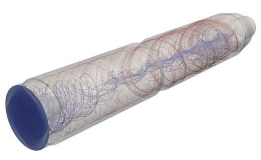 π¬ Axisymmetric computation of an air flow in a tube with continuous Galerkin discretization. Image courtesy of Raphael Zanella, as part of the 2021 MFEM Workshop Visualization Contest.
