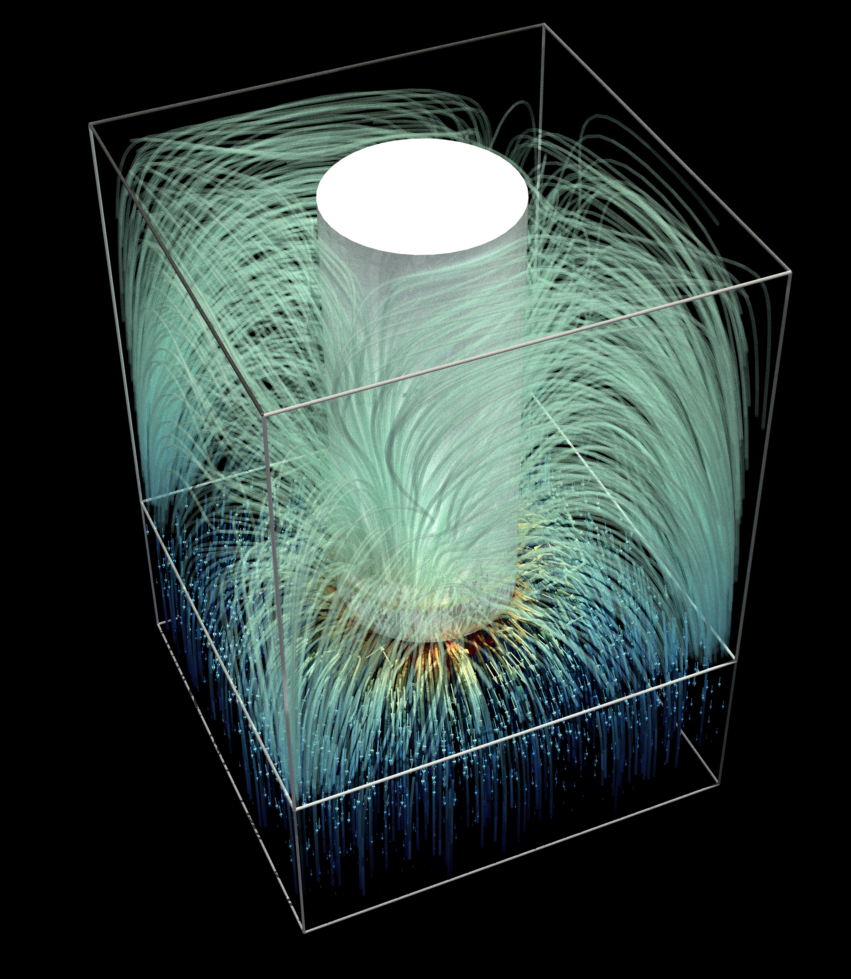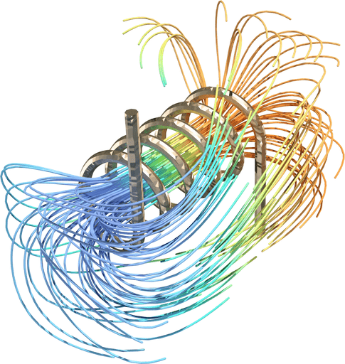 π¬ Magnetic diffusion problem solved to compute the magnetic field induced by current running through copper wire in air. Image courtesy of Will Pazner, winner of the 2022 MFEM Workshop Visualization Contest.
