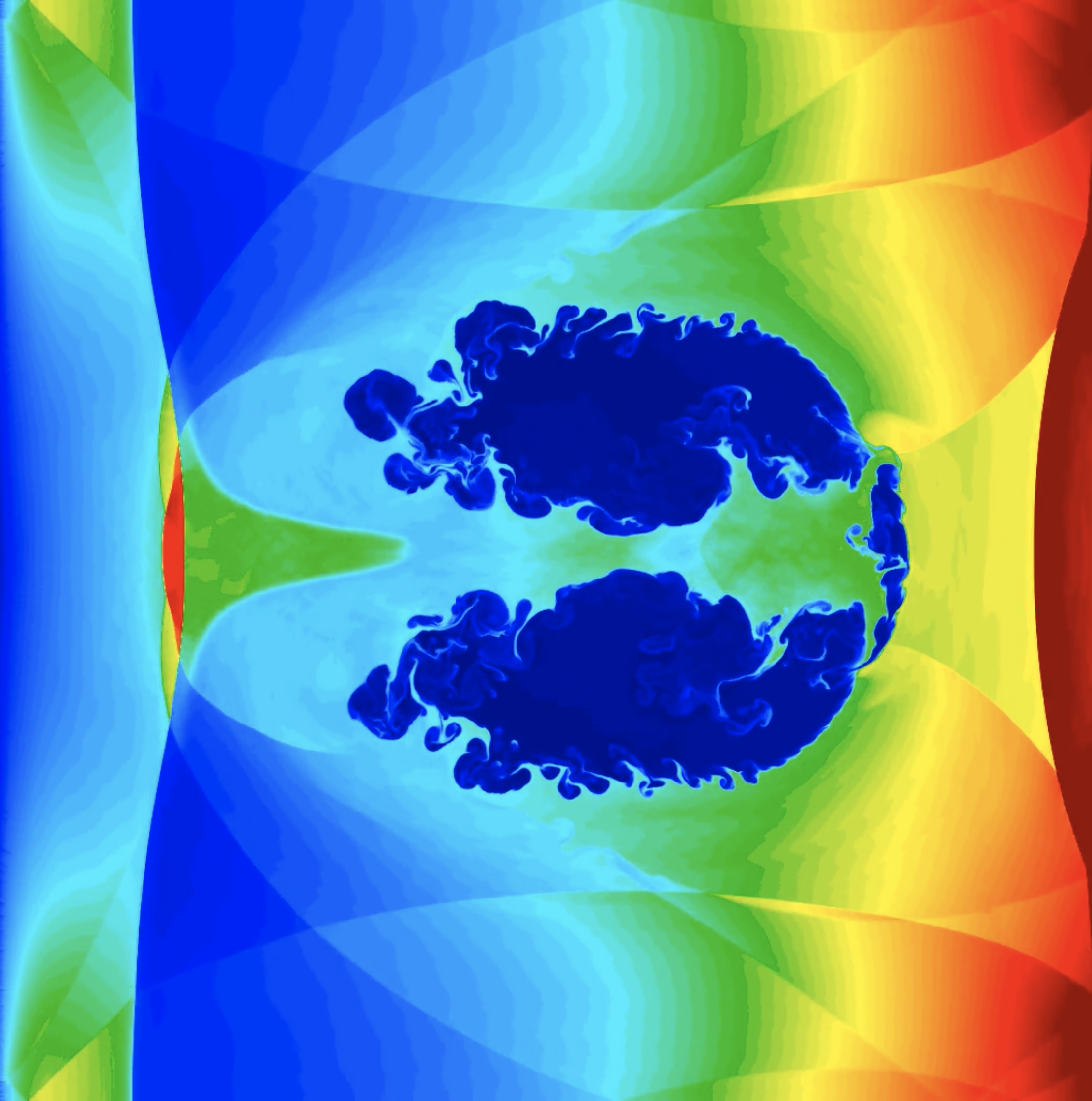 π¬ Shock-bubble-interaction using a Property-preserving discontinuous Galerkin scheme, see book. Image courtesy of Hennes Hajduk, as part of the 2023 MFEM Workshop Visualization Contest.