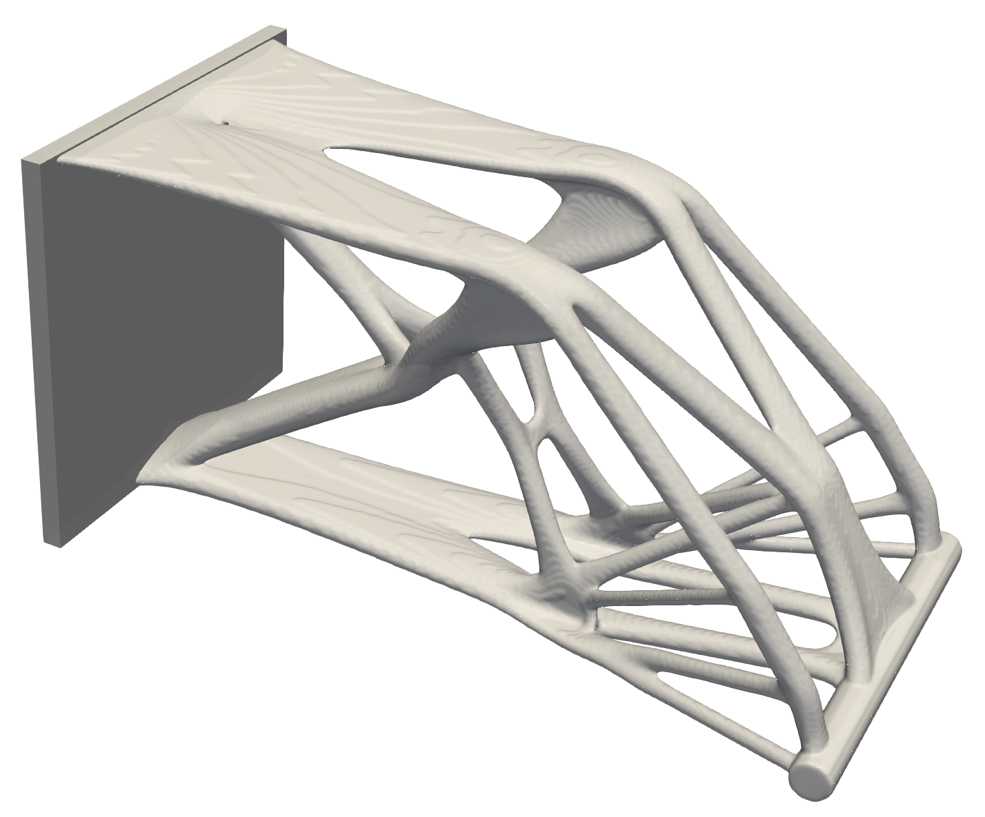 Density-based Topology Optimization for Cantilever beam with SiMPL method. Image courtesy of Dohyun Kim, as part of the 2024 MFEM Workshop Visualization Contest.