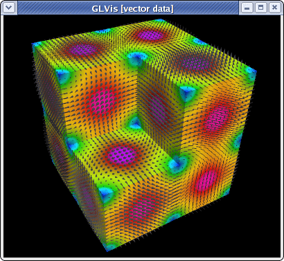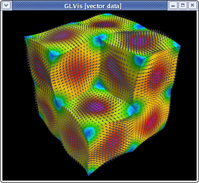 To visualize the magnitude of the solution with the proportionally-sized vector field shown only on the boundary of the domain, type "Vfooogt" in the GLVis window (or run glvis -m refined.mesh -g sol.gf -k "Vfooogt"):