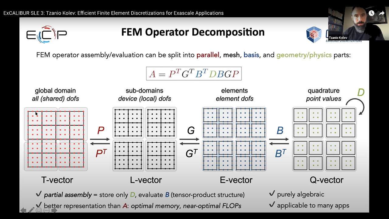 MFEM principal investigator Tzanio Kolev described the projectâs past, present, and future with an emphasis on its key capabilities of discretization algorithms, built-in solvers, parallel scalability, adaptive mesh refinement, and support for a range of computing architectures. Kolev also highlighted the global communityâs contributions as well as features included in the recent v4.3 software release.