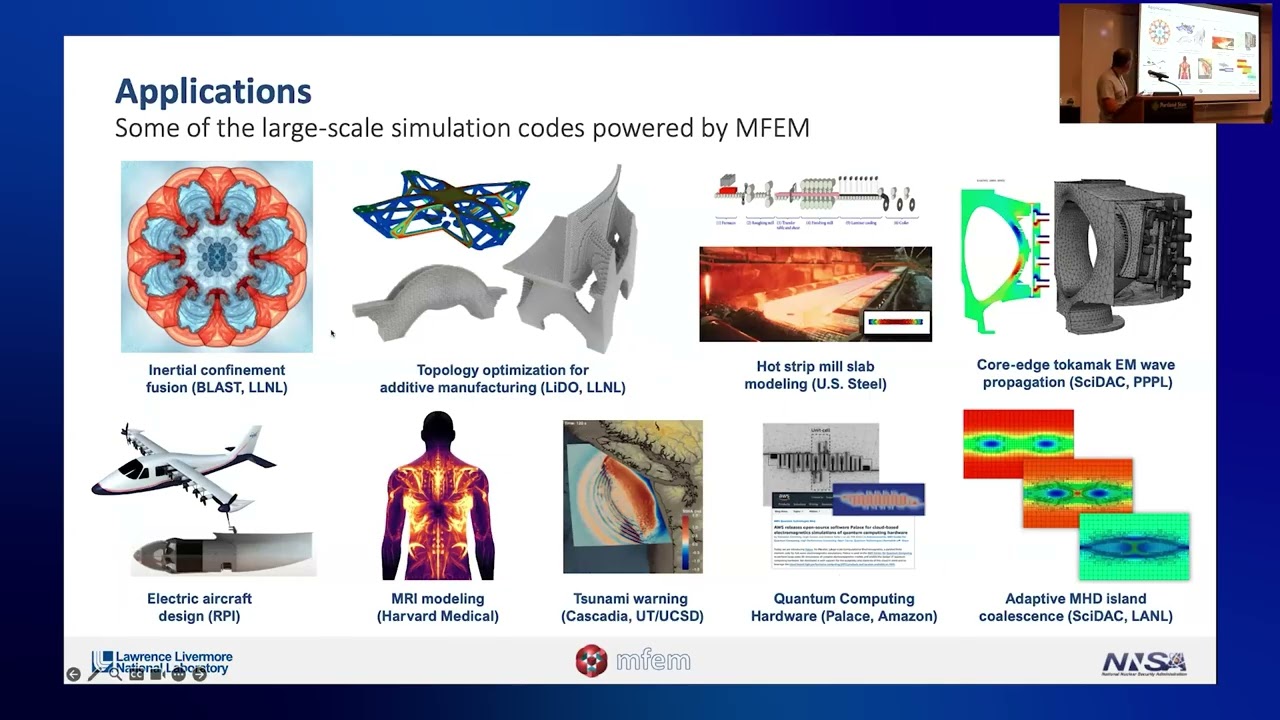 MFEM project lead Tzanio Kolev described the projectâs past, present, and future with an emphasis on its key capabilities, examples, and mini-apps. Kolev also highlighted the growth of the global community as well as features developed during 2025.
